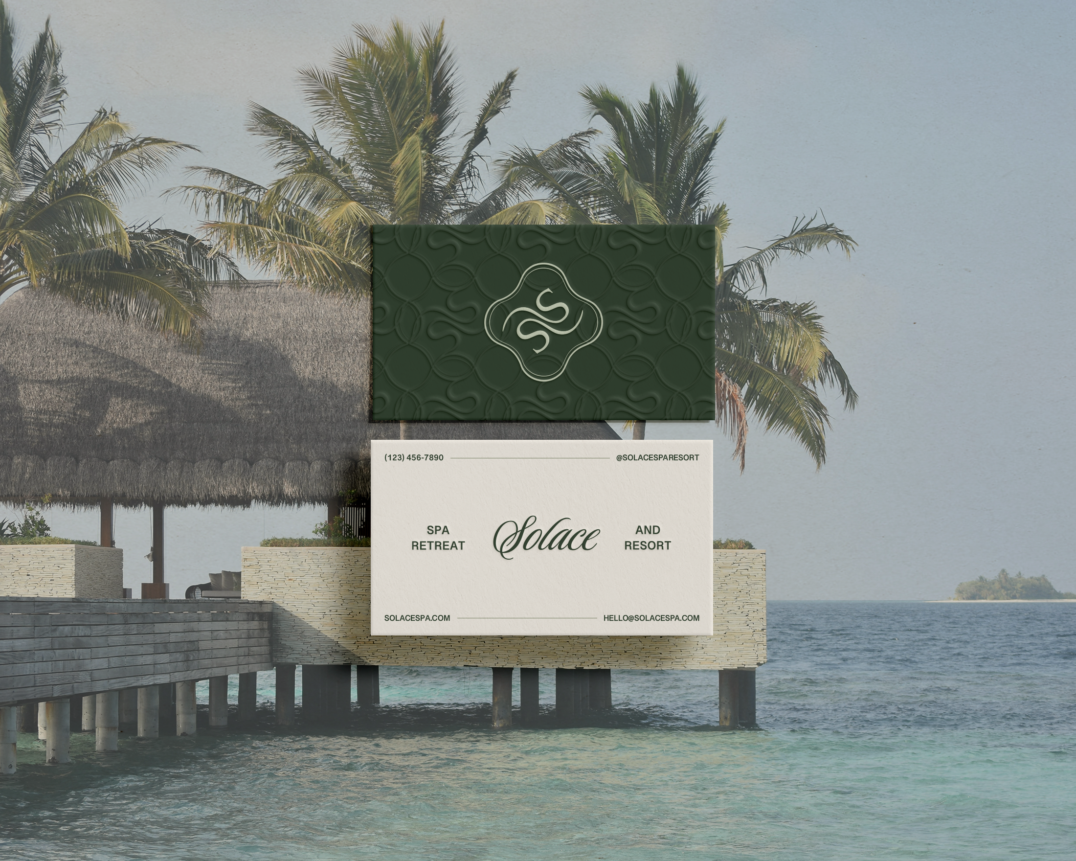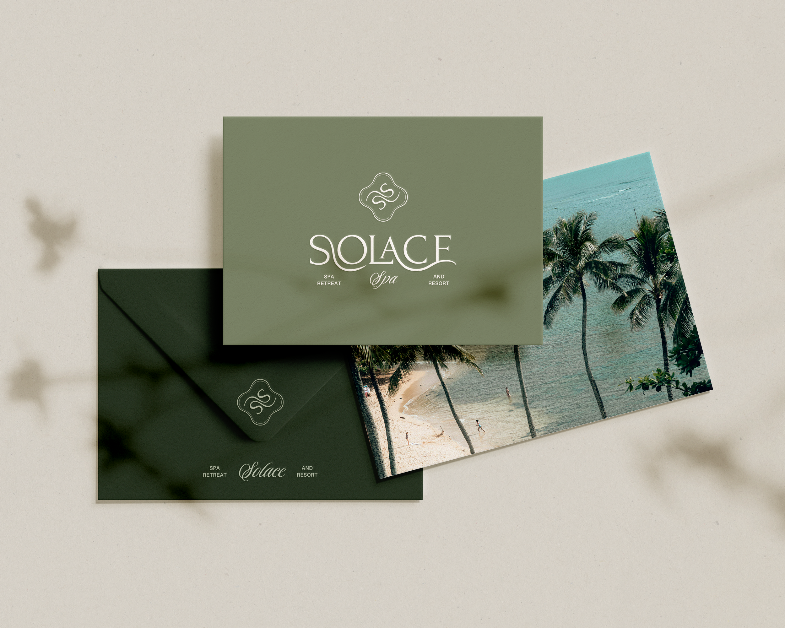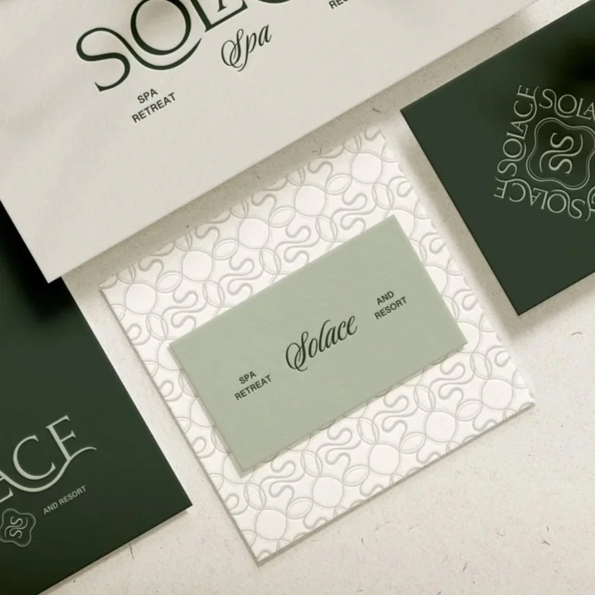 Inspired by the rhythm of nature and the restorative power of water, Solace is a destination where guests are invited to pause, transcend, and begin again. The visual tone is grounded yet ethereal, balancing earthy greens with a flowing logo that embodies both movement and transformation. A return to self through quiet rituals.